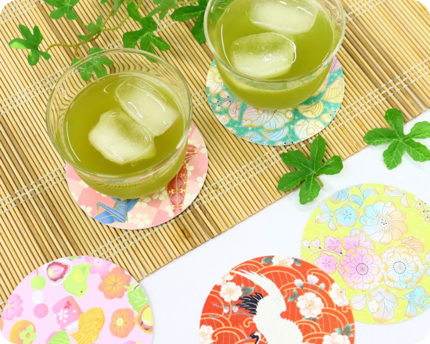 カミイソでは、包装紙・掛け紙・千代紙・敷紙など、用途に合わせた多彩な紙製品を多数展開しています。肌触りがよく温かみのある和紙の風合いを生かした商品から、店舗演出や贈答用に使える加工品まで幅広いニーズに対応。また、大切な人に気持ちを伝えるメッセージを書き込める紙製コースターは、飲食店からご家庭まで印象に残るひとときを演出します。