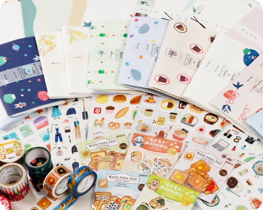 日常の中に小さな彩りを添える、カミイソのステーショナリーグッズ。和紙ならではの優しい風合いを生かしたマスキングテープや、貼ってはがせる機能性が嬉しいマスキングシール、使い勝手の良いフレークシール、季節を楽しめる柄が揃った懐紙や千代紙など幅広く展開。「使う人の気持ちがふわっと明るくなる」ようなデザインと品質にこだわり、日常から特別なシーンまで様々な用途でお楽しみいただけます。